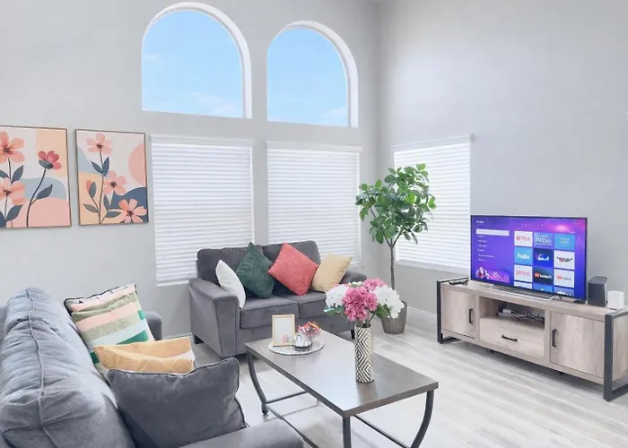 この別荘はデュランゴ・ヒルズ・ゴルフコースから3.7kmの距離の場所にあります。 ラスベガス・ボールパークまでは浴室2室の別荘から車で15分です。